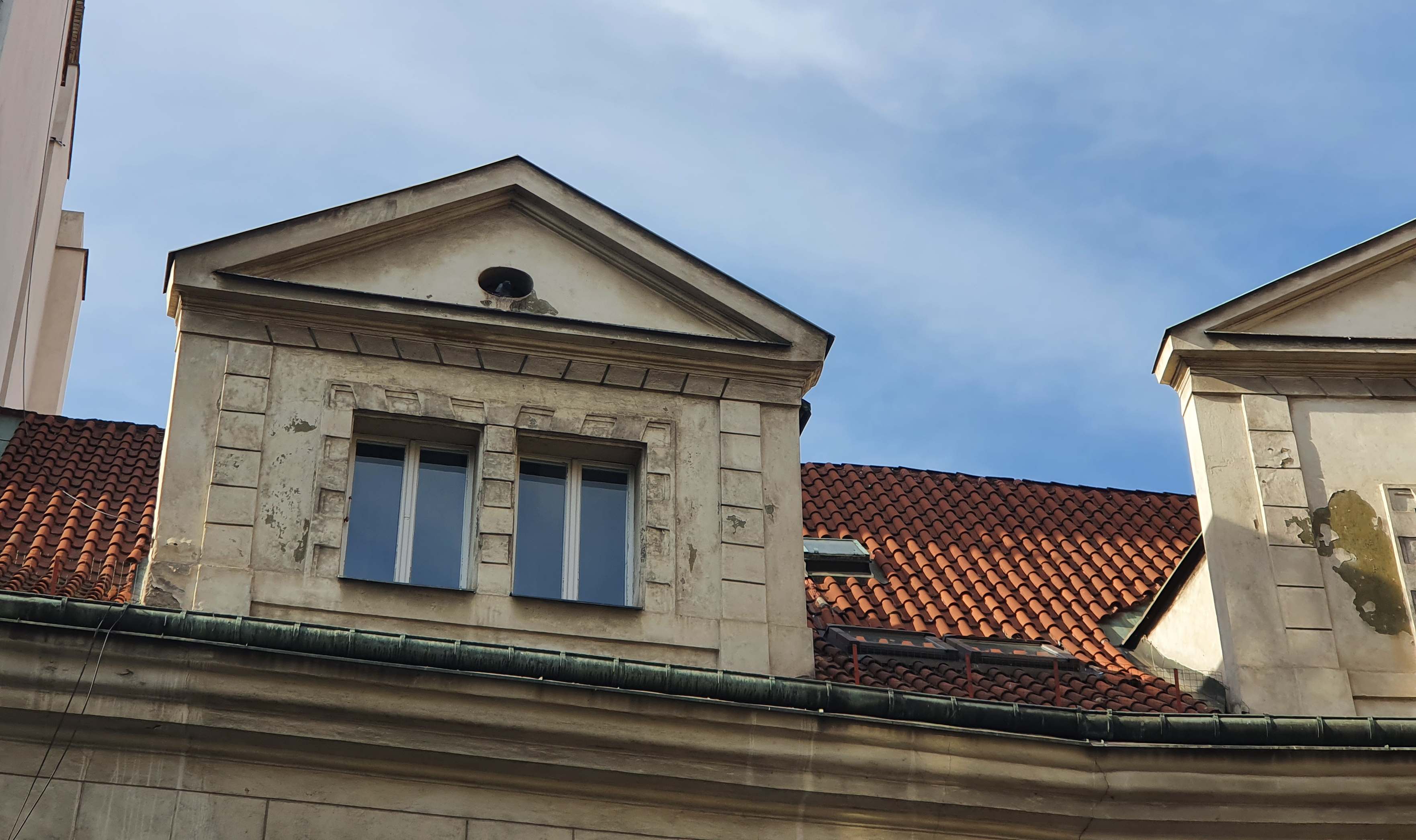Předmět dotace: oprava obvodového pláště (uliční fasáda, štítová stěna, vikýře), vše včetně výměny, resp. opravy klempířských prvků