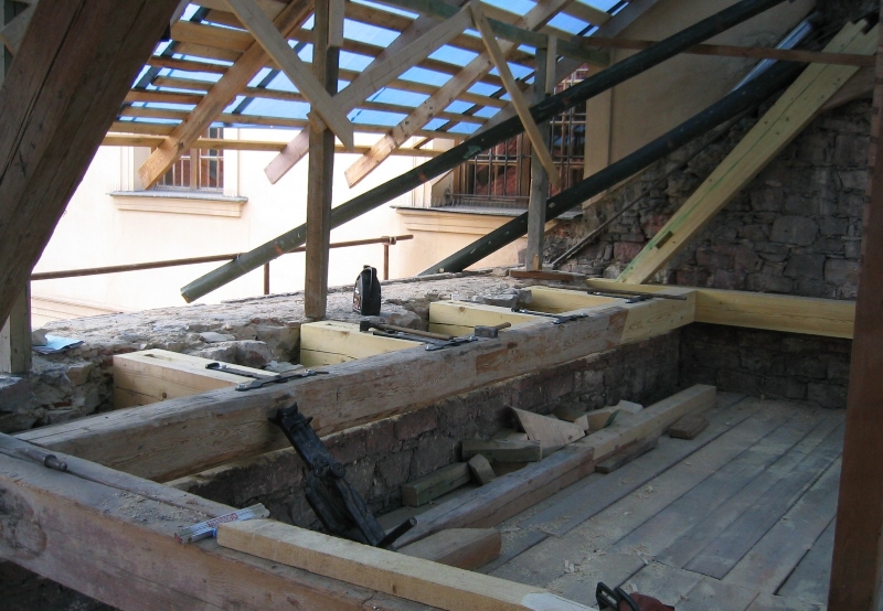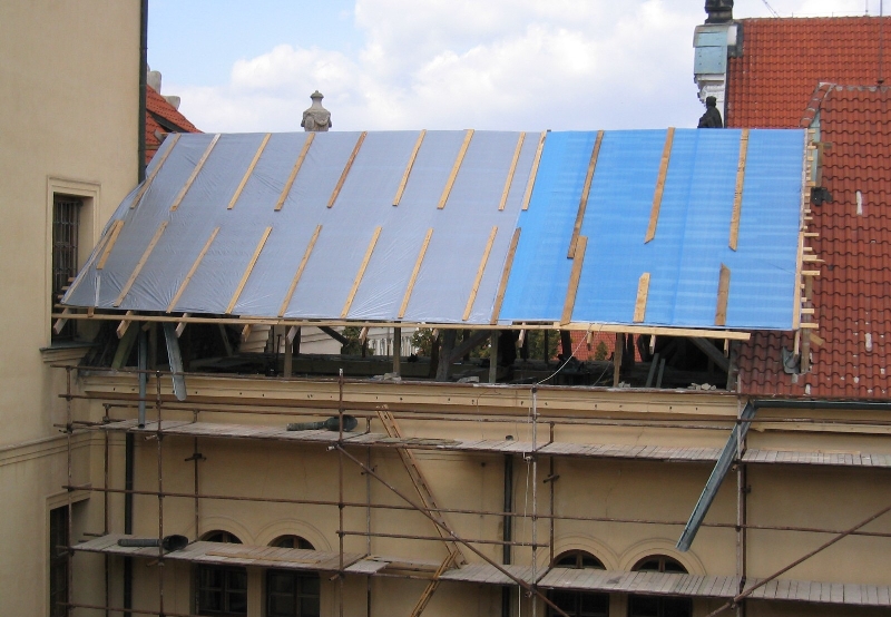 Oprava krovu a střechy nad Strahovskými knihovnami. |