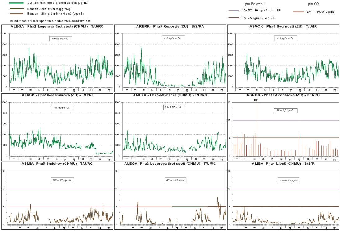 Dále se i v Praze na znečištění podílela nepříznivá meteorologická situace na začátku roku 2005 a delší topná sezona. Výsledky naměřených koncentrací PM10, NO2 a benzo(a)pyrenu jsou podnětem k řešení zcela nevyhovující dopravní situace v aglomeraci Praha, kde je nadlimitními koncentracemi zatížena značná část populace.