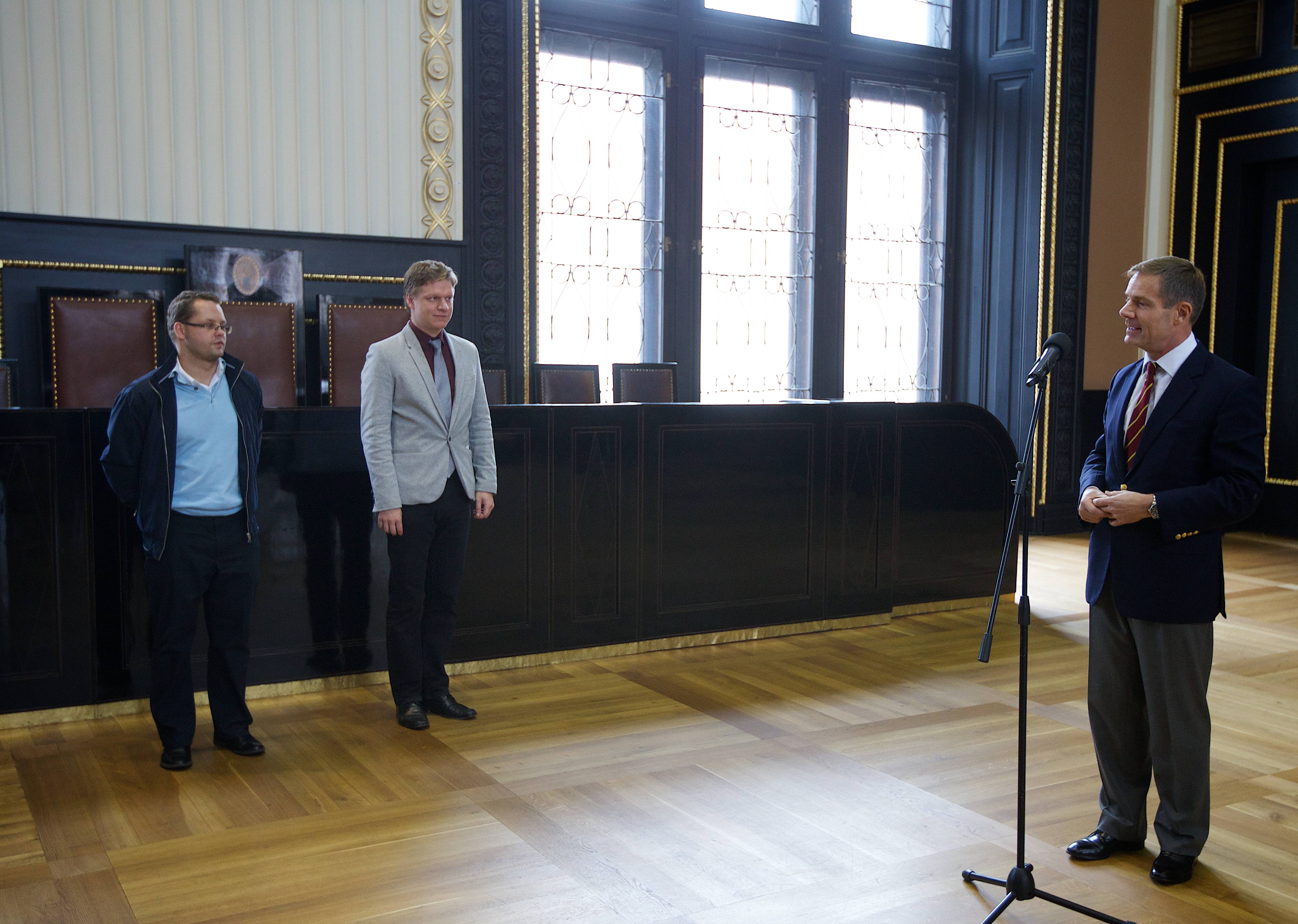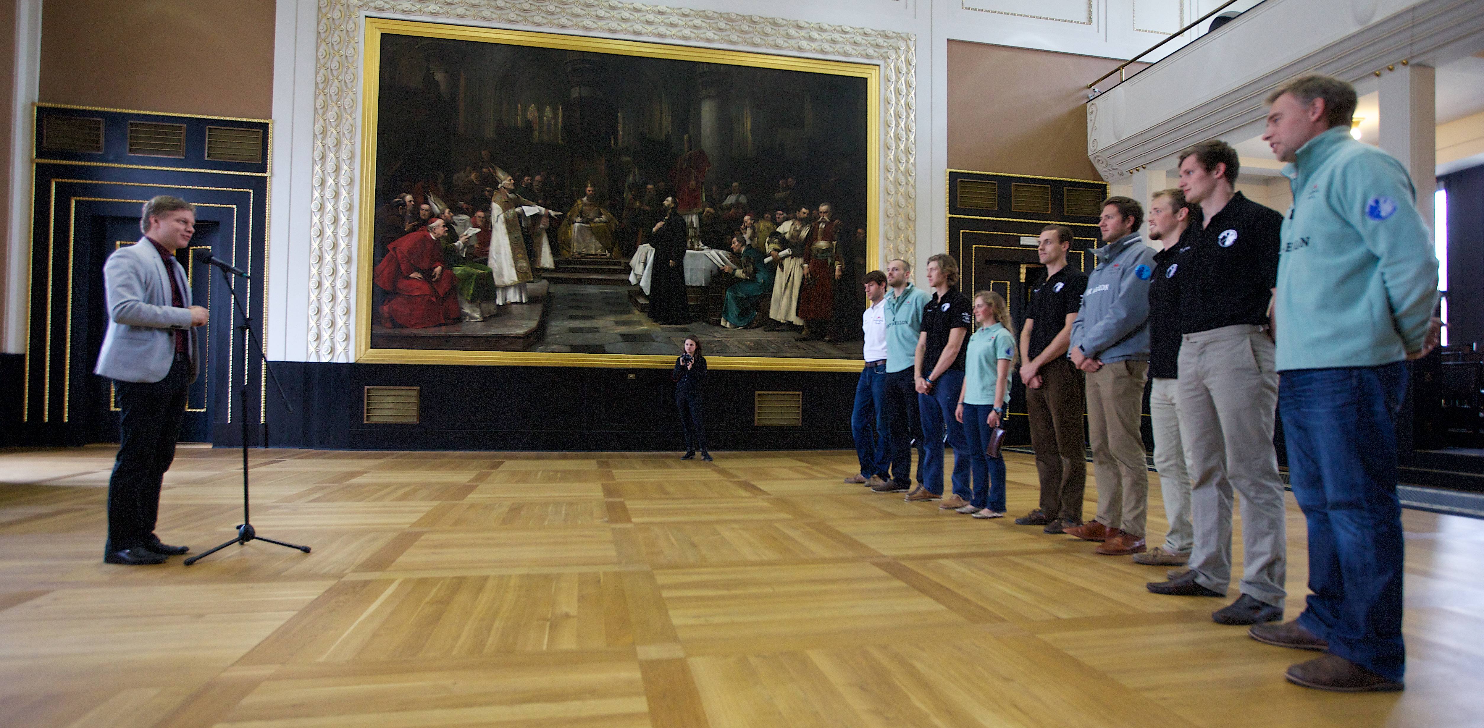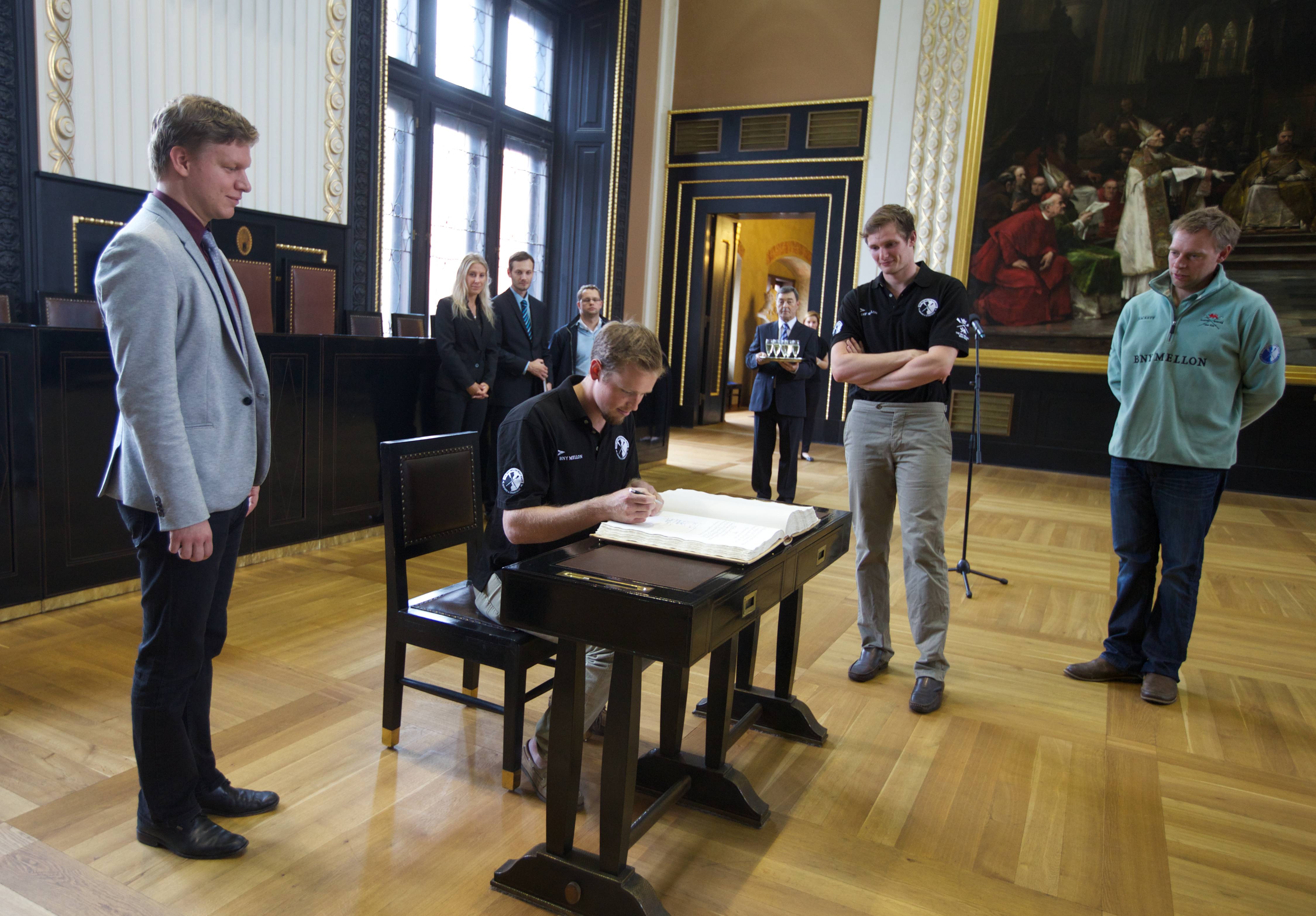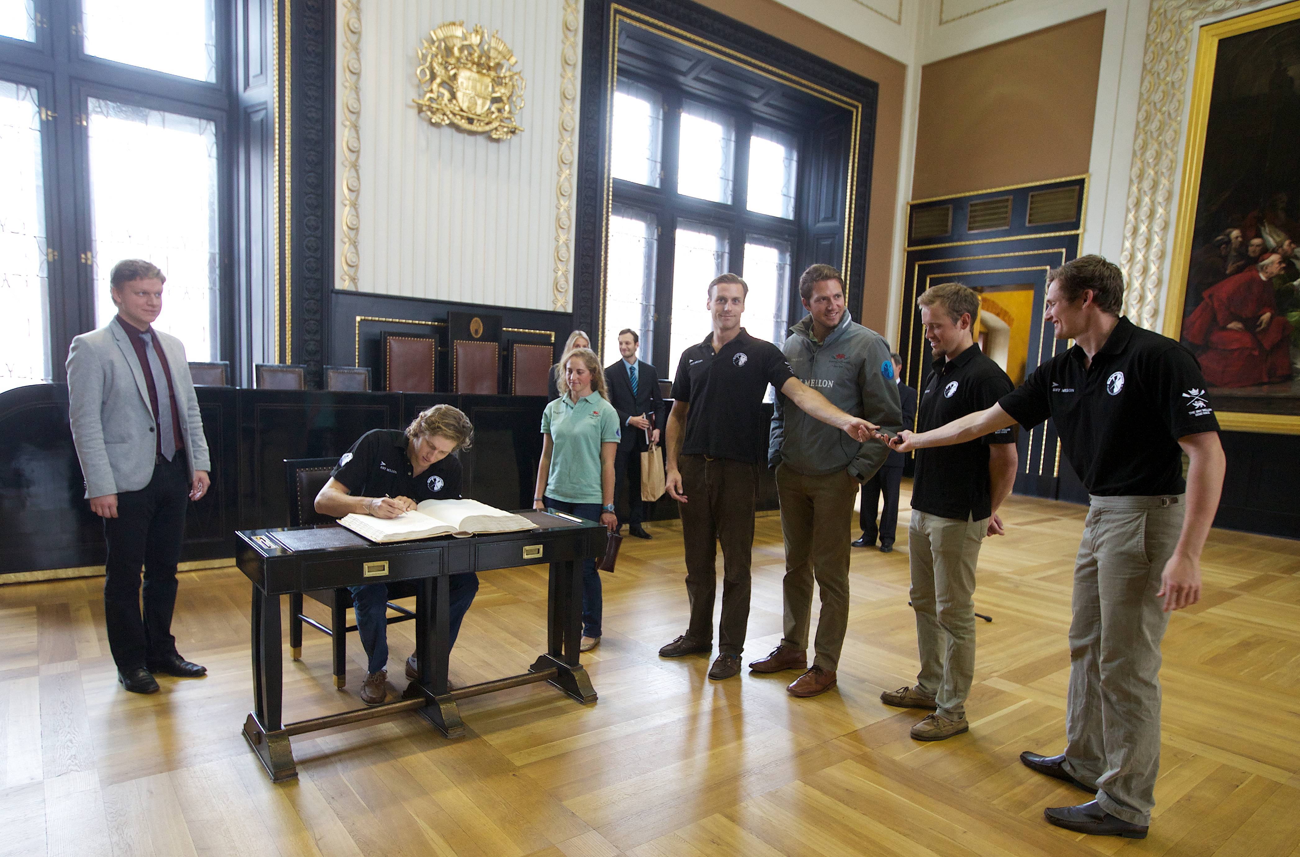 U příležitosti konání 100. ročníku Primátorek dnes primátor hl. m. Prahy Tomáš Hudeček přijal posádku osmiveslice a další hosty z Cambridge na Staroměstské radnici.